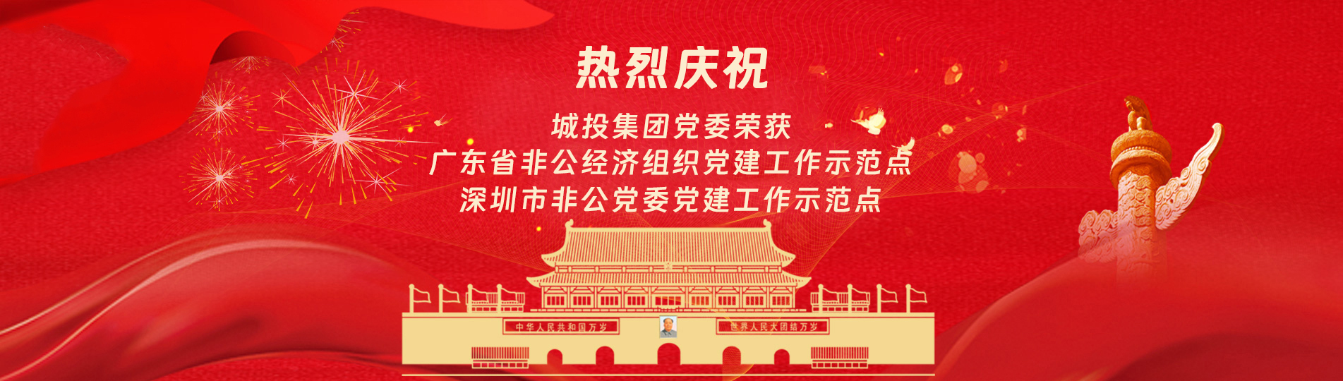 在上級黨委的正確領導下,在城投集團的大力支持下,集團黨委緊緊圍繞企業發(fā)展戰(zhàn)略,將黨建引領核心貫穿始終,以“五心”工程(即思政建設“核心”工程、經營發(fā)展“中心”工程、企業文化“向心”工程、黨建品牌“匠心”工程、服務基層“愛心”工程)為抓手,大膽探索,勇于突破和創新,不斷形成城投黨建特色,有效輸出城投實踐經驗,充分發(fā)揮“紅色引擎”作用,先后獲得“深圳市非公黨委黨建工作示范點”、“深圳市兩新組織黨建工作示范點”、“深圳市文明單位”、“深圳市先進基層黨組織”、“廣東省非公有制經濟領域黨建工作示范點”等榮譽稱號。